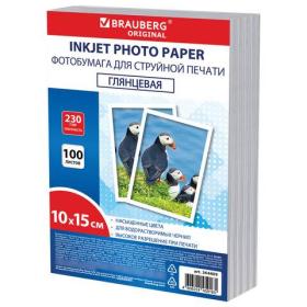 Фотобумага глянцевая, 10х15 см, 230 г / м2, односторонняя, 100 листов, ПАКЕТ, BRAUBERG ORIGINAL, 364409