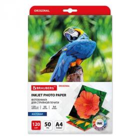 Фотобумага матовая, А4, 120 г / м2, односторонняя, 50 листов, BRAUBERG ORIGINAL, 363981