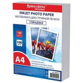 Фотобумага глянцевая, А4, 140 г / м2, односторонняя, 100 листов, ПАКЕТ, BRAUBERG ORIGINAL, 364414