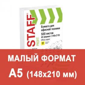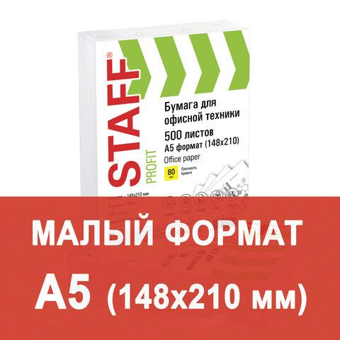 Бумага офисная МАЛОГО ФОРМАТА (148х210), А5, 80 г / м2, 500 л., марка С, STAFF "Profit", 146% (CIE), 110446