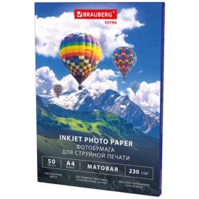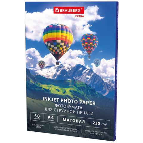 Фотобумага матовая, А4, 230 г / м2, односторонняя, 50 листов, BRAUBERG EXTRA, 364488