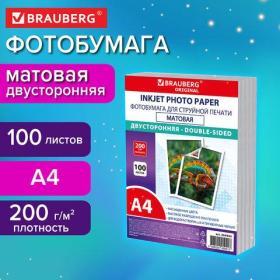 Фотобумага матовая, А4, 200 г / м2, двусторонняя, 100 листов, ПАКЕТ, BRAUBERG ORIGINAL, 364434