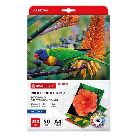 Фотобумага матовая, А4, 230 г / м2, односторонняя, 50 листов, BRAUBERG ORIGINAL, 363991