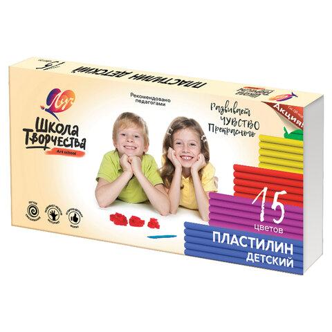 Пластилин детский ЛУЧ "Школа творчества", 15 цветов, 300 г, стек, картонная упаковка, 29С 1764-08