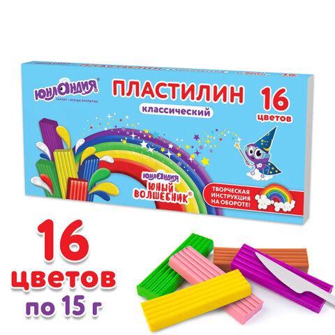 Пластилин классический ЮНЛАНДИЯ "ЮНЫЙ ВОЛШЕБНИК", 16 цветов, 240 грамм, СО СТЕКОМ, ВЫСШЕЕ КАЧЕСТВО, 106430
