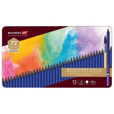 Карандаши художественные цветные акварельные, 72 цвета, 4 мм, металлический кейс, BRAUBERG ART PREMIERE, 181925