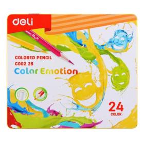 Карандаши Deli Color Emotion EC00225 EC00225 трехгранный липа 24 цв. коробка металлическая 24