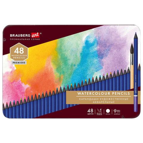 Карандаши художественные цветные акварельные, 48 цветов, 4 мм, металлический кейс, BRAUBERG ART PREMIERE, 181924