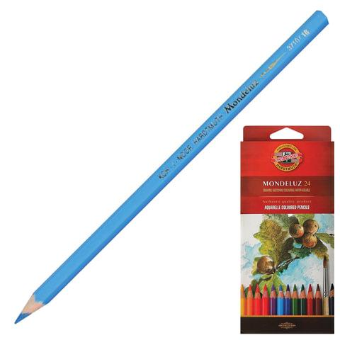 Карандаши цветные акварельные художественные KOH-I-NOOR "Mondeluz", 24 цвета, 3,8 мм, заточенные, европодвес, 3718024001KSRU