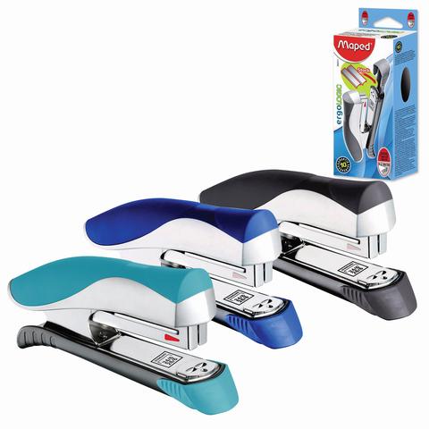 Степлер №24 / 6, 26 / 6 MAPED "Ergologic", до 25 листов, с контейнером для скоб, серебристо-бирюзовый, 352513
