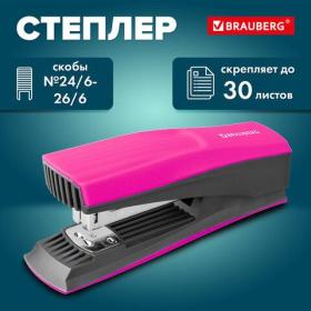Степлер №24 / 6, 26 / 6 BRAUBERG "SUPER", до 30 листов, маджента и черный, 272740