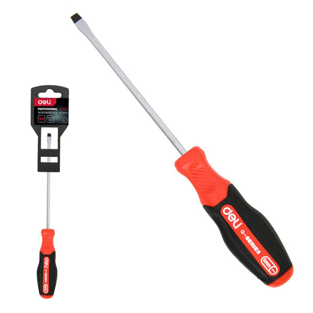 Шлицевая отвертка Deli DL6381501N 8х150мм сталь Cr-V, двухкомпонентная прорезиненная рукоять
