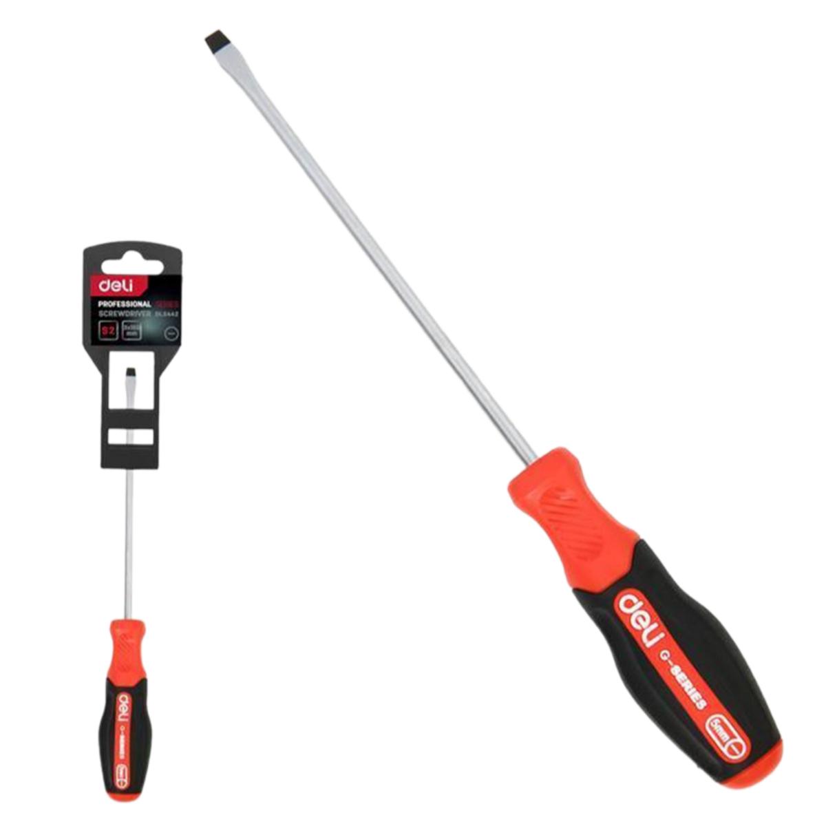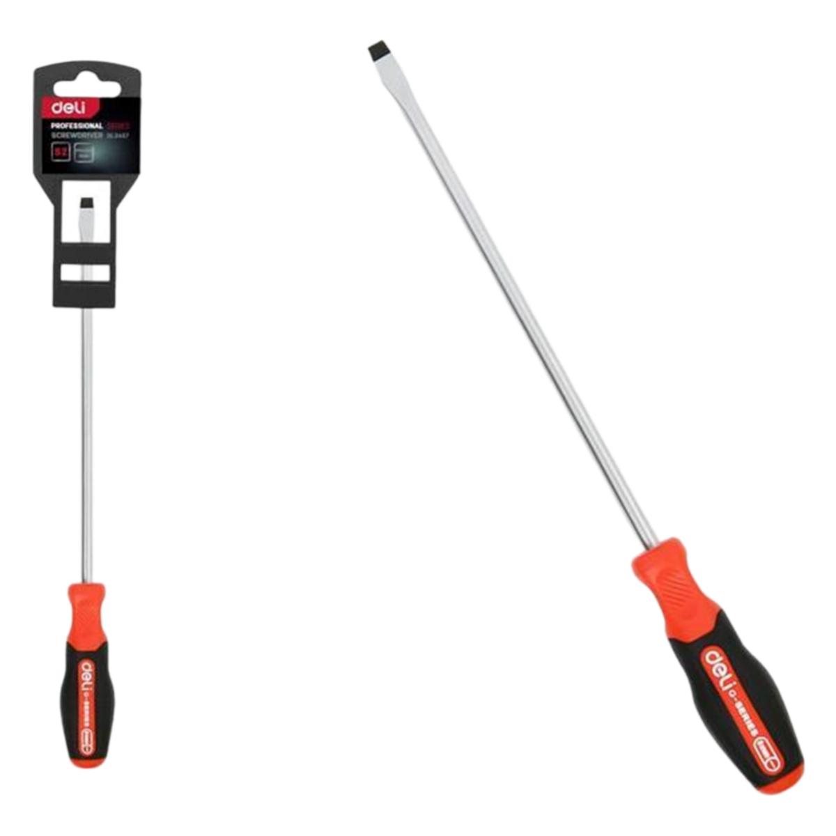 Шлицевая отвертка Deli DL6382501N 8х250мм сталь Cr-V, двухкомпонентная прорезиненная рукоять