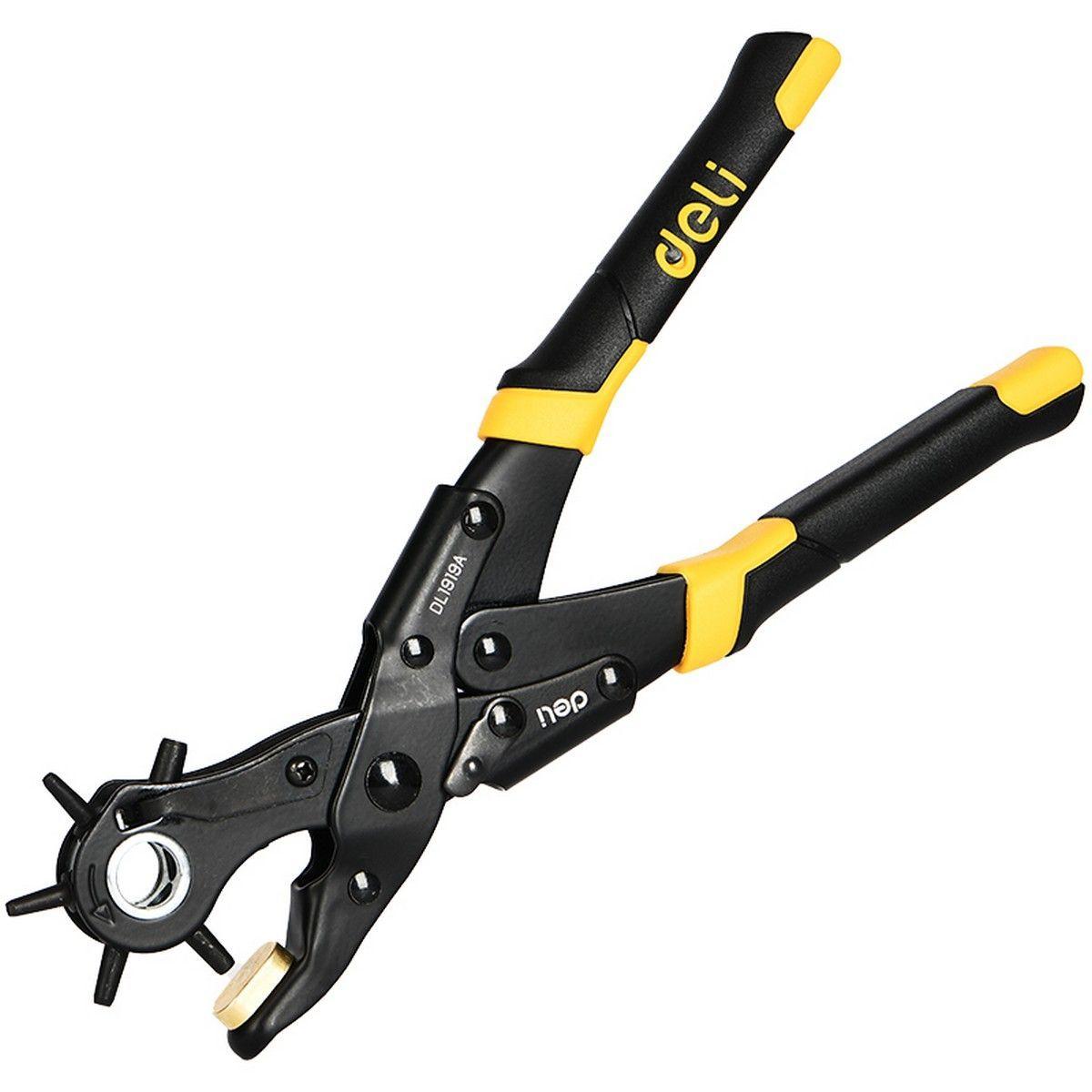 Револьверный дырокол для кожи 6-в-1 двухрычажный Deli DL1919A 225мм, Bad Pack диаметр пуансона: 2, 2,5, 3, 3,5, 4, 4,5мм, сталь Cr-V