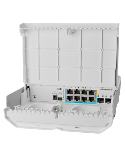 Уличный коммутатор MikroTik netPower Lite 7R with 8 x Gigabit Ethernet ports (7 with Reverse POE-in, 1 with PoE-OUT), 2 x SFP+ cages, SwitchOS, outdoor enclosure, mounting kit (power supply NOT included)