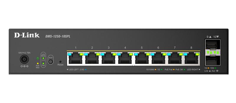 Коммутатор / Управляемый L2 PoE-коммутатор, 8x2.5GBase-T PoE, 2x10GBase-T, 2x10GBase-X SFP+, PoE-бюджет 240 Вт, защита от статического электричества до 6 кВ, CLI, консольный порт RJ-45