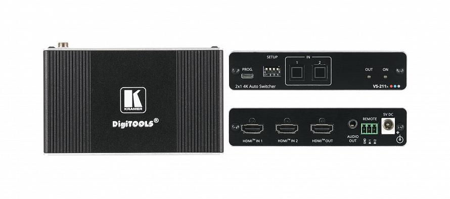 Коммутатор Kramer Electronics [VS-211X] 2х1 HDMI с автоматическим переключением; коммутация по наличию сигнала, поддержка 4K60 4:4:4, деэмбедирование аудио