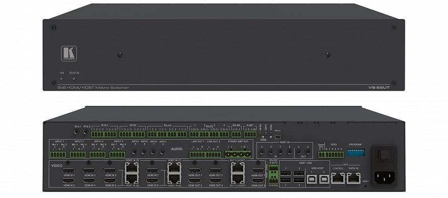 Матричный коммутатор Kramer Electronics [VS-88UT] 8х8 HDMI и HDBaseT с эмбеддированием / деэмбеддированием звука, встроенным главным контроллером помещения и усилителем аудио; поддержка 4K60 4:2:0, POE