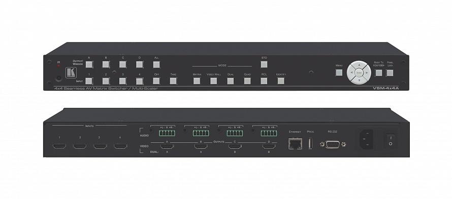 Матричный коммутатор Kramer Electronics [VSM-4x4A] 4x4 HDMI бесподрывный с масштабируемыми входами; балансные / небалансные аудиовыходы