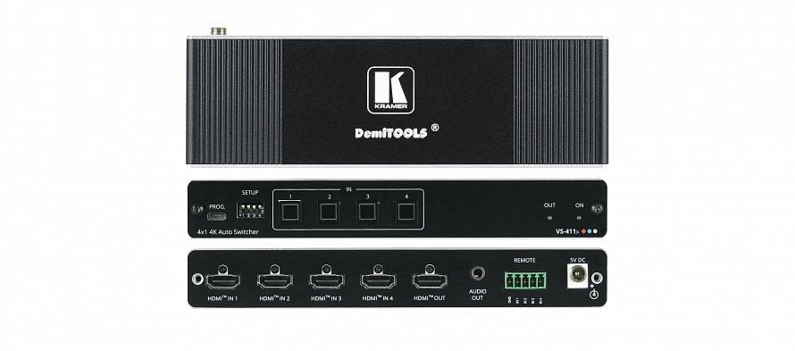 Коммутатор Kramer Electronics [VS-411X] 4х1 HDMI с автоматическим переключением; коммутация по наличию сигнала, поддержка 4K60 4:4:4, деэмбедирование аудио