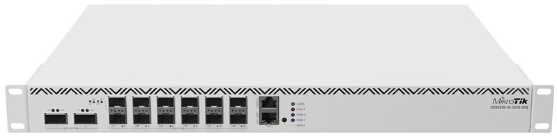 Маршрутизатор MikroTik Cloud Core Router 2216-1G-12XS-2XQ with Amazon Annapurna Labs Alpine v3 AL73400 CPU (16-cores, 2GHz per core) and Marvell Prestera Aldrin2 switch-chip, 16GB RAM, 2x100G QSFP cages, 14x25G SFP