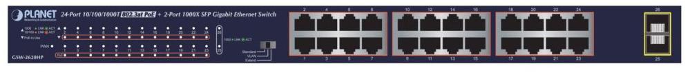 коммутатор / PLANET 24-Port 10 / 100 / 1000T 802.3at PoE + 2-Port 1000SX SFP Gigabit Switch with LCD PoE Monitor (300W PoE Budget, Standard / VLAN / Extend mode)