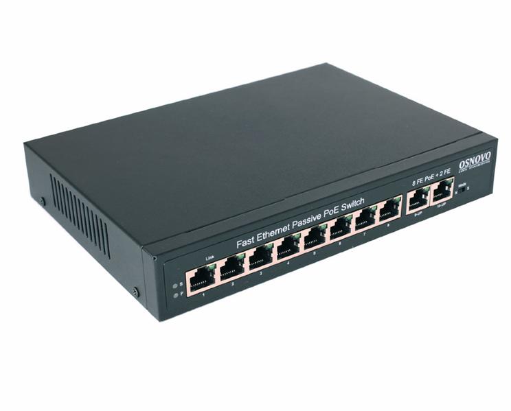 Коммутатор / OSNOVO Passive PoE коммутатор, 8*10 / 100 Base-T+ 2*10 / 100 Base-T Uplink, до 30W на порт