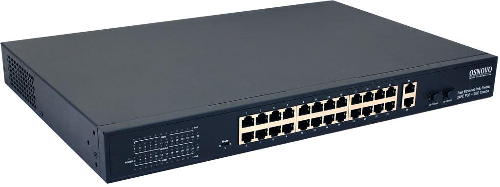 Коммутатор OSNOVO PoE коммутатор 24 x 10 / 100 Base-T PoE, 2 x GE Combo Uplink (RJ45 + SFP), PoE на порт - до 30W, суммарно PoE до 385W