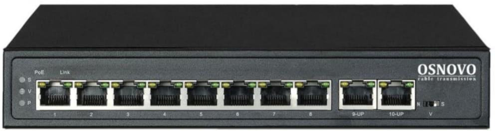 Коммутатор / OSNOVO PoE коммутатор, 8 x FE с поддержкой PoE (IEEE 802.3af / at), 2 x FE, до 30W на порт, суммарно до 120W