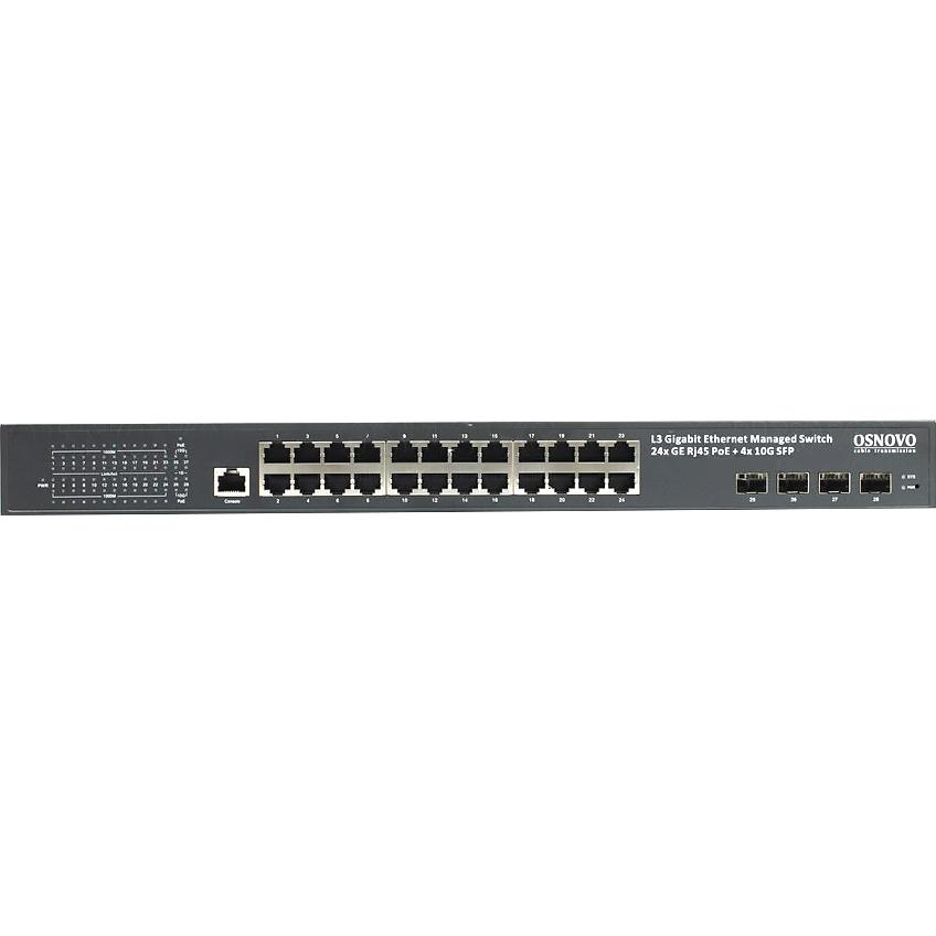 Коммутатор / OSNOVO Гигабитный L3 PoE коммутатор на 28 портов, 24 *10 / 100 / 1000 Base-T PoE, 4*10G SFP+ Uplink, PoE на порт до 30W, суммарно до 400W