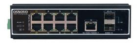 OSNOVO SW-60802 / IC Промышленный PoE коммутатор на 10 портов. Порты: 8 x FE (10 / 100Base-T) с PoE (до 25W) + 2 x GE SFP (1000Base-X).