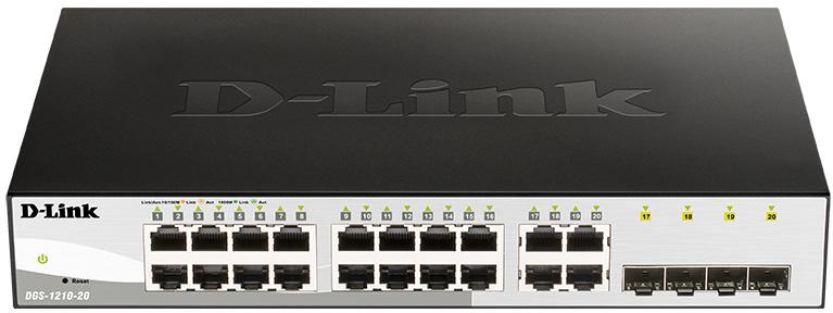 Коммутатор / DGS-1210-20 / F Smart L2 Switch 16х1000Base-T, 4хCombo 1000Base-T / SFP, Compact CLI