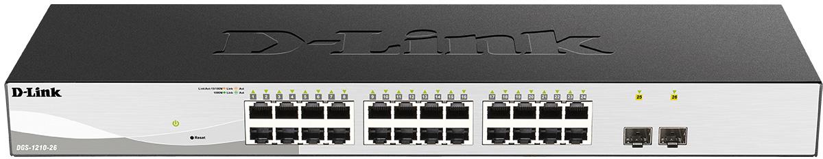 Коммутатор / DGS-1210-26 / F Smart L2 Switch 24х1000Base-T, 2х1000Base-X SFP, Compact CLI