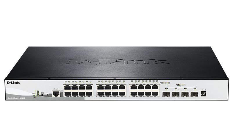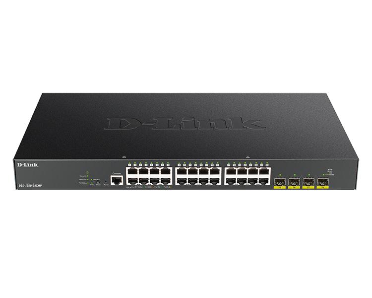 Коммутатор D-Link PROJ Настраиваемый L2+ стекируемый PoE-коммутатор, 24x1000Base-T PoE, 4x10GBase-X SFP+, PoE-бюджет 370 Вт, CLI, консольный порт RJ-45