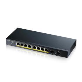 Коммутатор PoE+ Zyxel GS1100-10HP, 8xGE PoE+, 2xSFP, настольный, бесшумный, бюджет PoE 130 Вт, Kensigton lock
