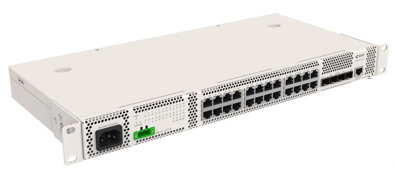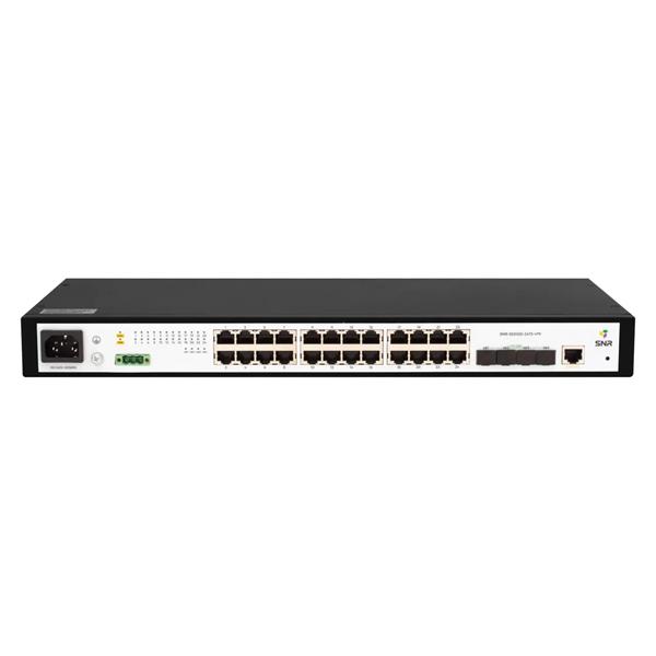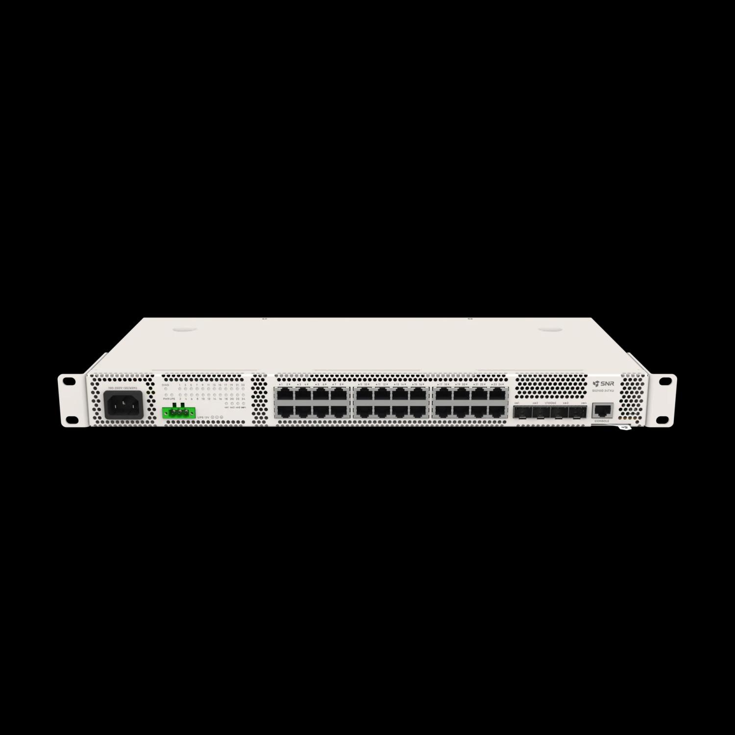 Коммутатор SNR Управляемый коммутатор уровня 2+, 24 порта 10 / 100 / 1000Base-T, 4 порта 1 / 10G SFP+, встроенный БП ~220V AC, разъем для АКБ 12V с возможностью заряда