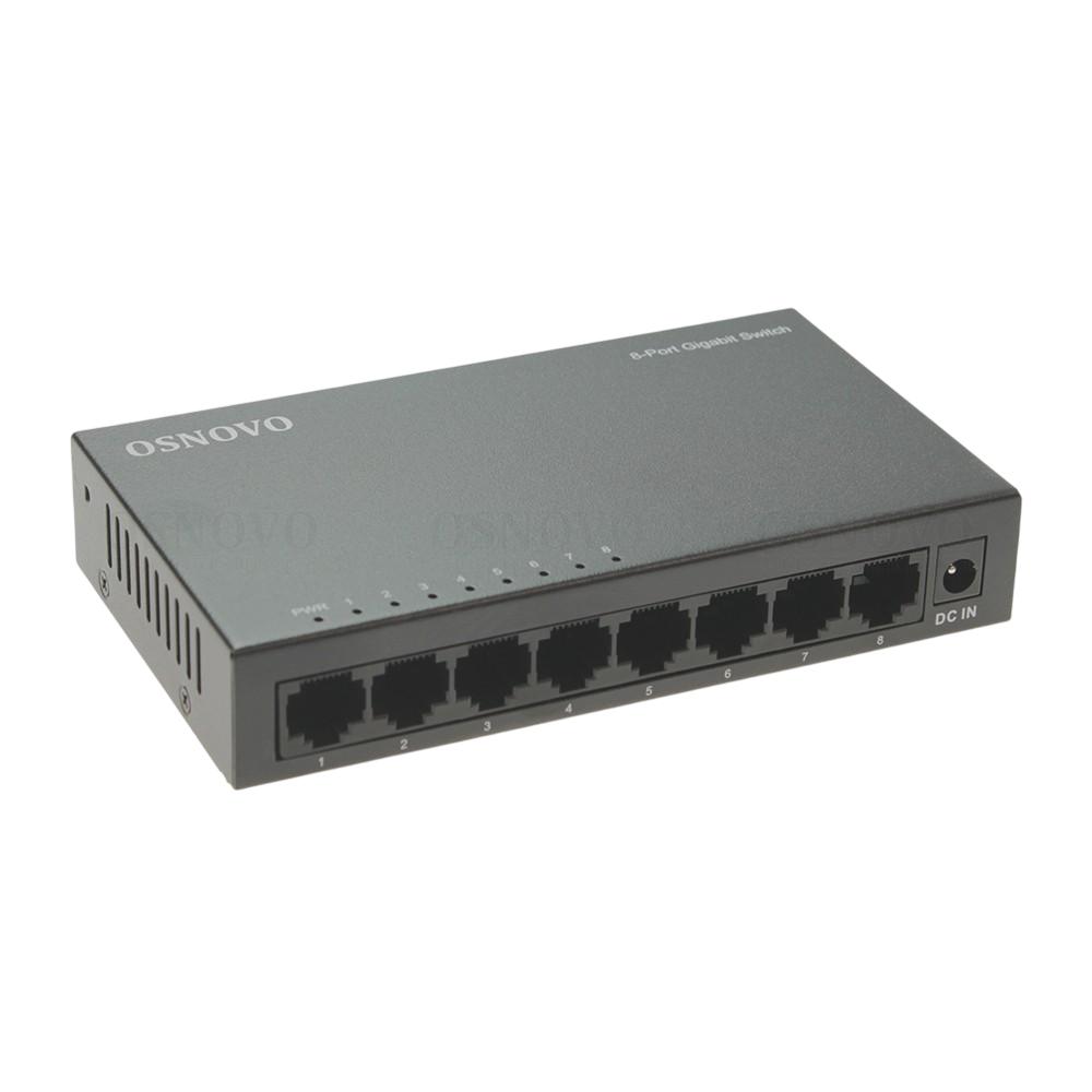 Коммутатор неуправляемый / OSNOVO Неуправляемый коммутатор Gigabit Ethernet на 8 портов. Порты: 8 x GE (10 / 100 / 1000Base-T). Auto MDI / MDIX Встроенная грозозащита 2кВ. В комплекте БП DC12V(1A). Размеры (ШхВхГ): 138 x 25 x 78мм. Рабочая температура: 0...+40 г