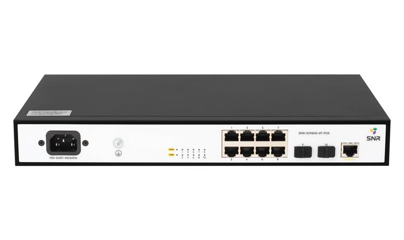 Коммутатор SNR Управляемый Web Smart POE коммутатор уровня 2, 8 портов 10 / 100 / 1000BaseT, 2 порта 100 / 1000BaseX (SFP). POE 100W