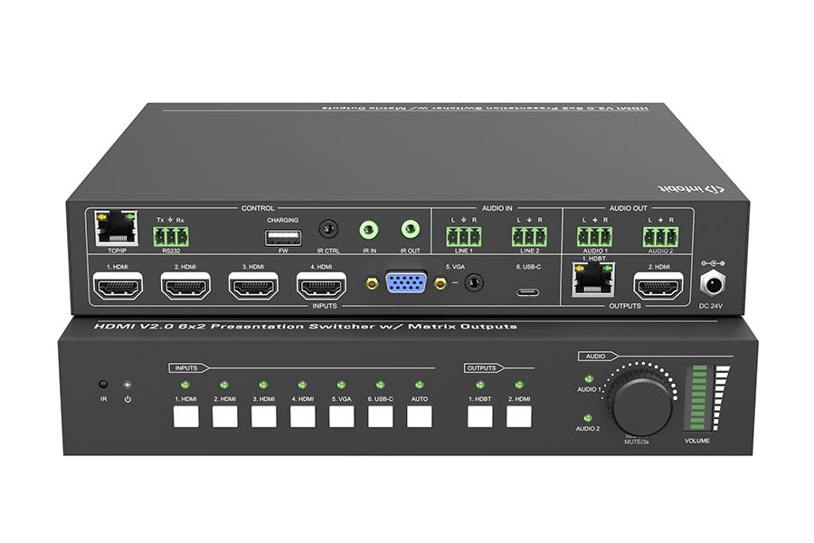 Презентационный коммутатор Infobit [iSwitch 602] 4K60 6X2 с выходами HDMI и HDBaseT