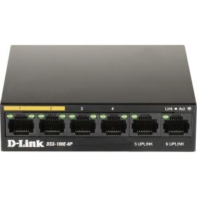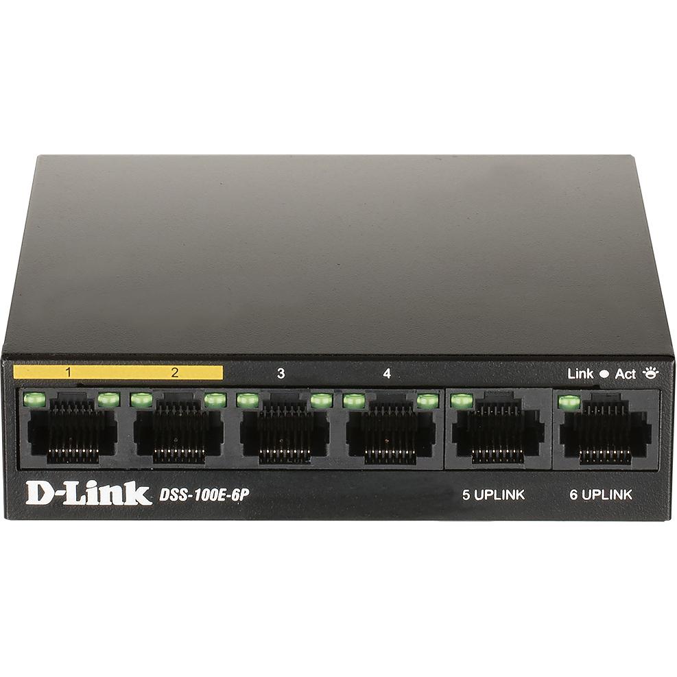 Коммутатор / DSS-100E-6P Unmanaged Surveillance Switch 6x100Base-TX (4x100Base-TX PoE), Surge 6KV, PoE Budget 55W, Long-range PoE up to 250m, metal case