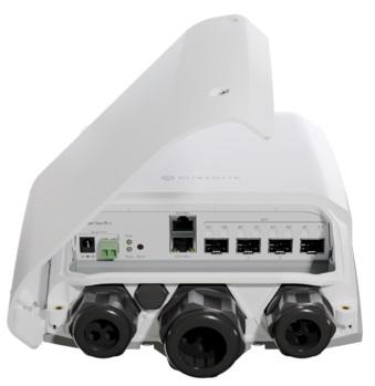 Коммутатор / FiberBox Plus CRS305-1G-4S+OUT with 800MHz CPU, 256MB RAM, 1xGigabit LAN, 4 x SFP+ cages, RouterOS L5 or SwitchOS (dual boot), IP66 compliant outdoor enclosure, mounting kit, PSU, PoE injector