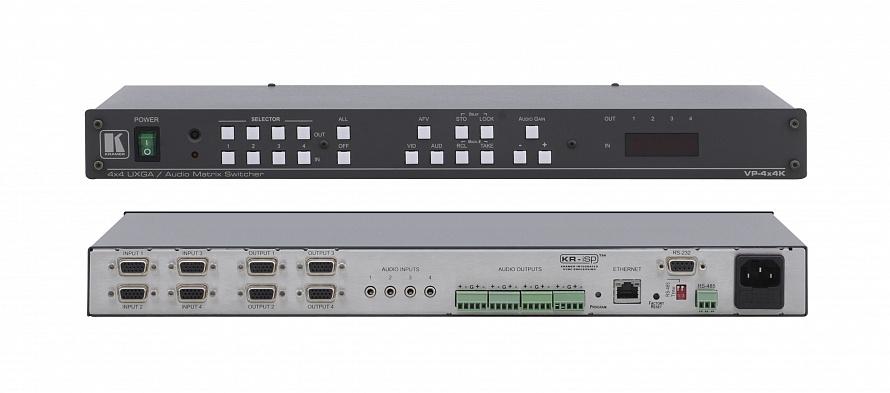 Матричный коммутатор Kramer Electronics [VP-4x4K] 4x4 сигналов VGA и балансных звуковых стереосигналов, c технологией KR-ISP, 400 МГц.