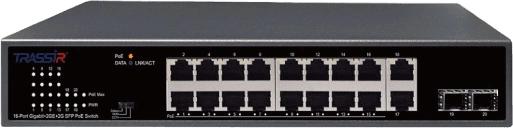 Коммутатор Trassir TR-NS14202S-185-16POE (L2) 20x1Гбит / с 2SFP 16PoE 185W неуправляемый
