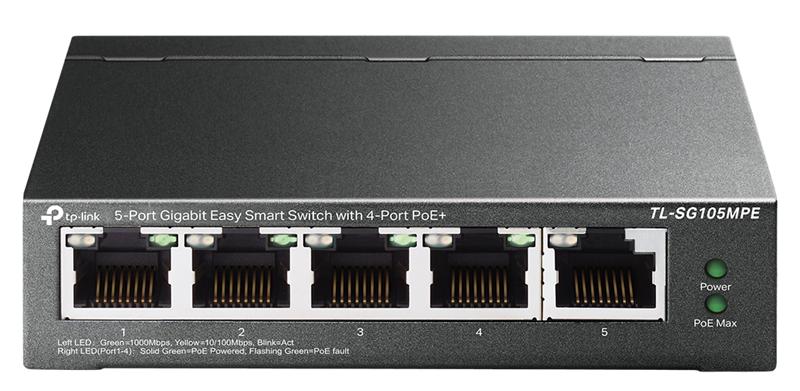 коммутатор TP-Link TL-SG105MPE, Коммутатор Easy Smart с 5 гигабитными портами (4 порта PoE+), 802.3af / at, бюджет PoE — 120 Вт, стальной корпус