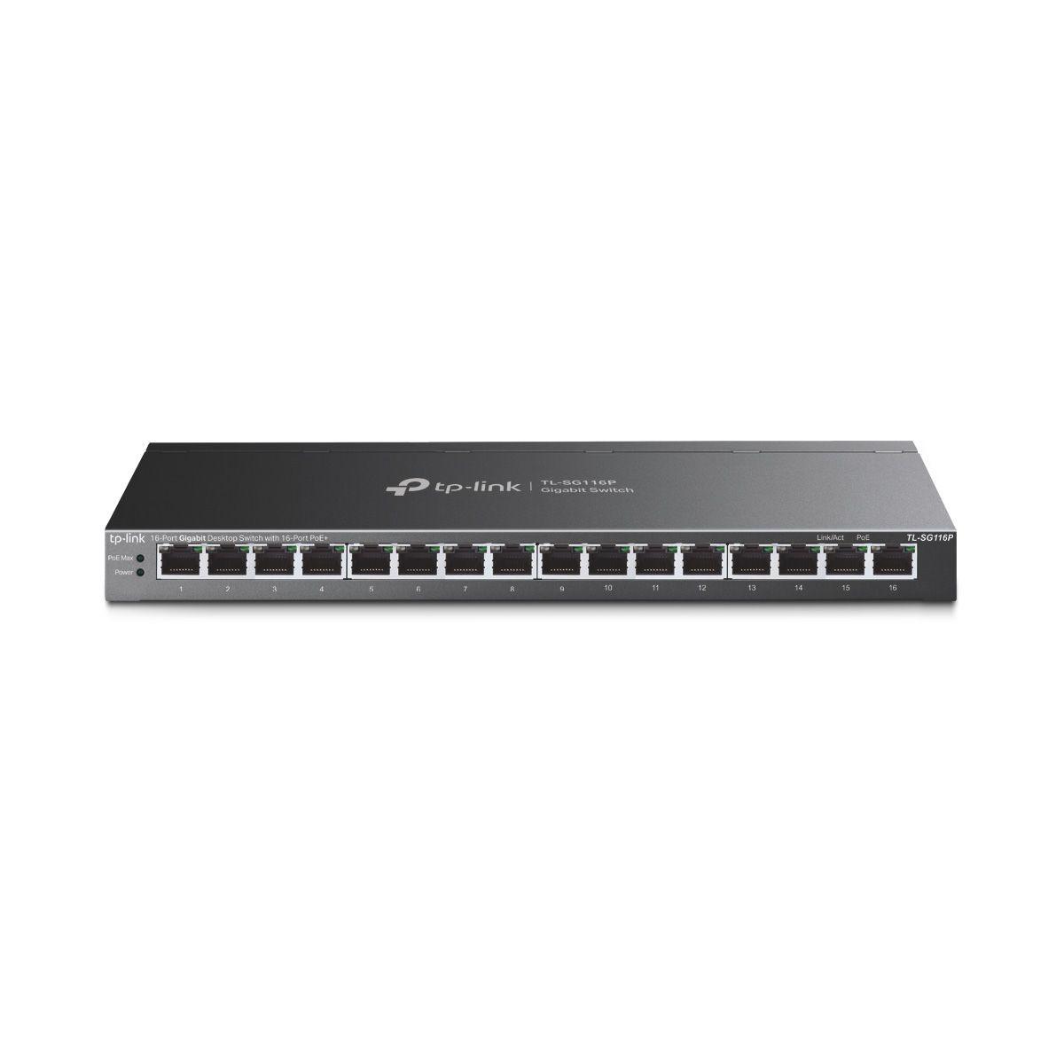 Коммутатор TP-LINK TL-SG116P Настольный коммутатор с 16 гигабитными портами PoE+