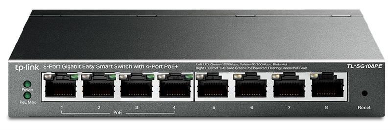 коммутатор TP-Link TL-SG108PE, 8-Port Gigabit Easy Smart Switch with 4-Port PoE+
