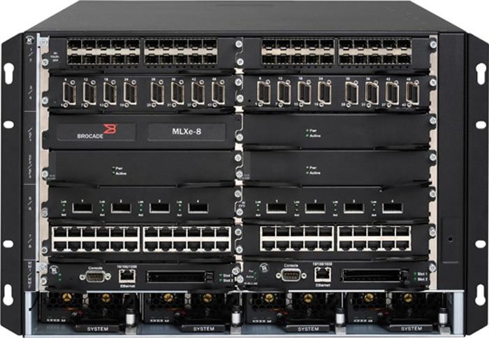 Маршрутизатор / Brocade MLXe-8 AC system with 1 MR2 (M) management module, 2 high speed switch fabric modules, 2 1800W AC power supplies, 2 exhaust fan assembly kits and air filter. Power cord not included