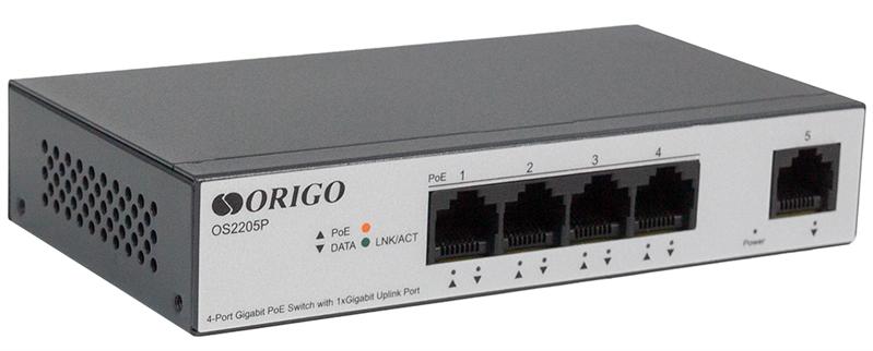 Коммутатор ORIGO Неуправляемый PoE-коммутатор, 4x1000Base-T PoE, 1x1000Base-T, PoE-бюджет 60 Вт, корпус металл