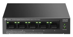 коммутатор TP-Link LS105GP, 5-Port Gigabit Desktop Switch with 5-Port PoE+, 65 W, 250m