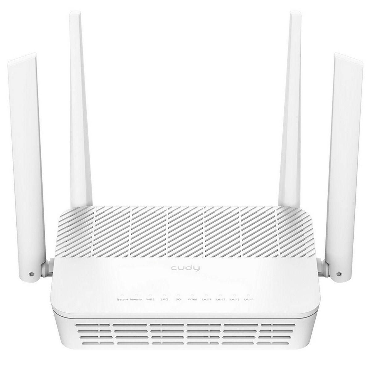 Маршрутизатор CUDY AX3000 Gigabit Wi-Fi 6 Mesh Router Dual Band, Chipset MT7981BA+MT7976CN+MT7531AE, 802.11ax / ac / a / b / g / n, 2402Mbps at 5GHz + 574Mbps at 2.4GHz, 5 x 10 / 100 / 1000Mbps Ports, 4 x 5dBi fixed antennas, WiFi router / AP / Repeater / WISP Mode, PPTP / L2
